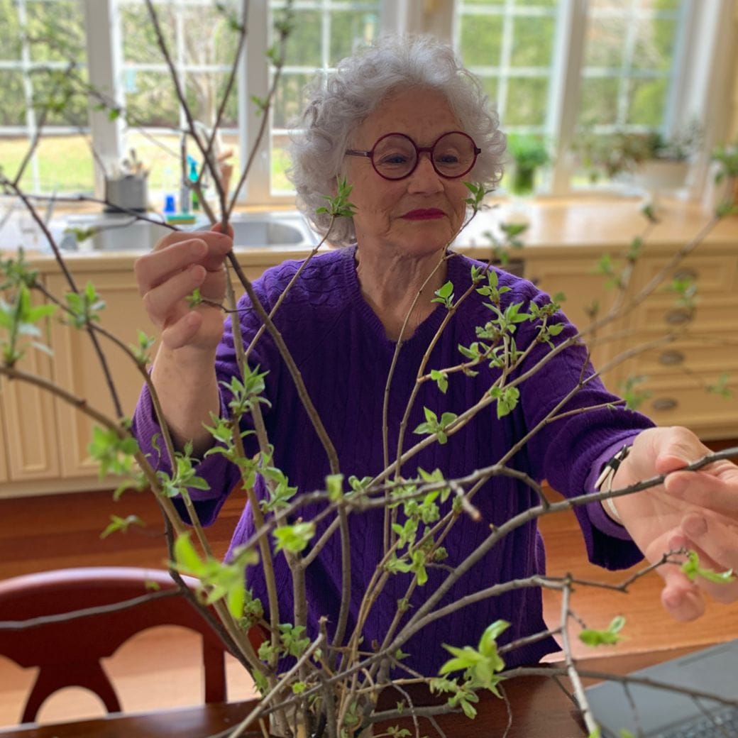 Or then, it might have been April, while walking through a residential area, wishing to save the small buds from the jumble of branches, cut off and thrown out on the street. Each day, I would discreetly pick up a few branches and take them home to place in a vase of fresh water on my large table. I showered the beautiful bouquet of buds with kisses and words of love. And this morning, the bouquet looks like a tree, full of young leaves, all content to enjoy the warmth of my large kitchen.