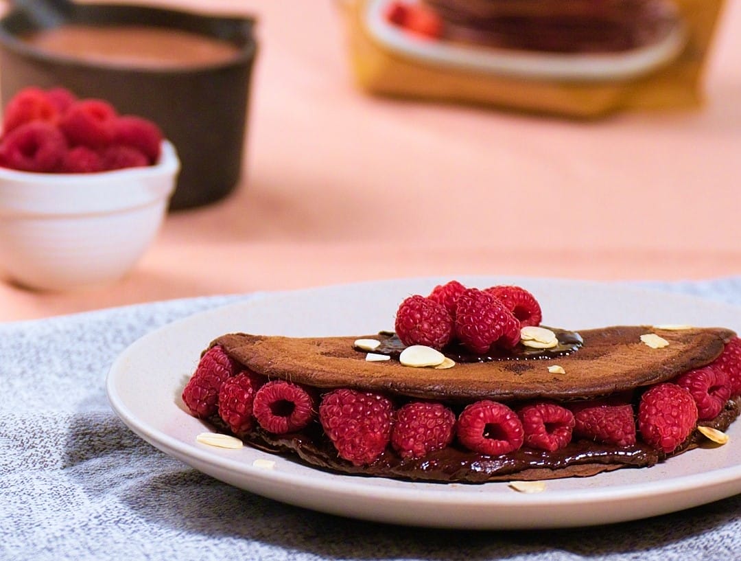 - Repeat Steps 4. Arrange crêpes on a plate and top with raspberries and slivered almonds. Feel free to adapt the recipe by adding your own creative touch!